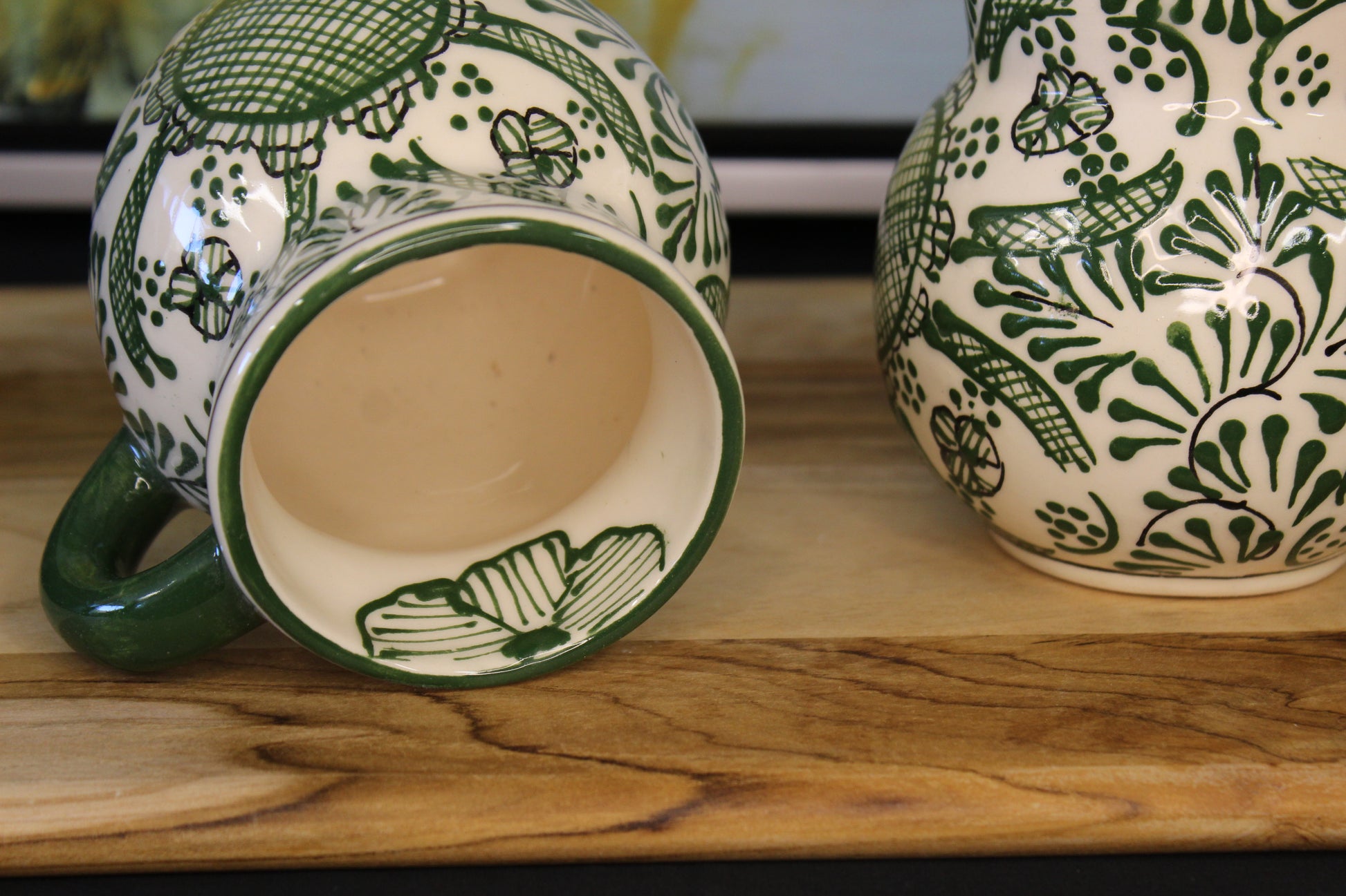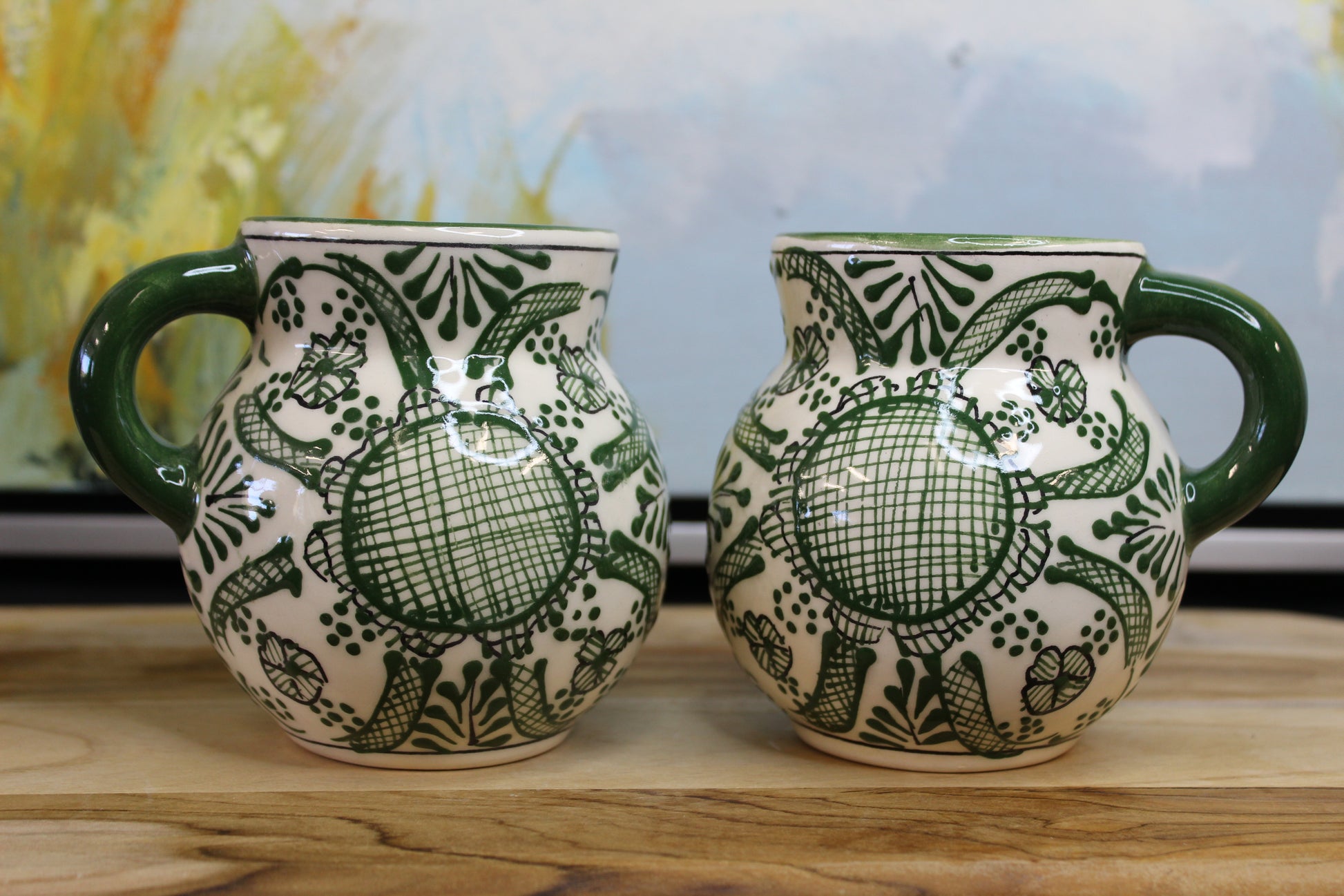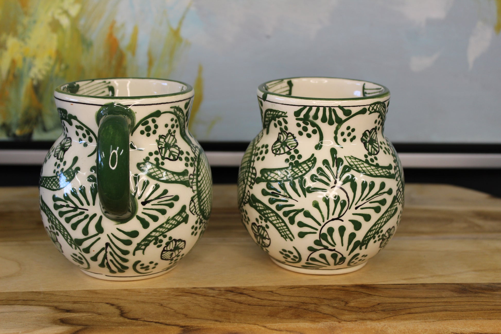 Upgrade your coffee and tea experience with our Merry Me Green pottery set! Each piece is hand painted and one of a kind, crafted by a family in Jalisco. Unleash the full potential of your hot beverages with this unique set.