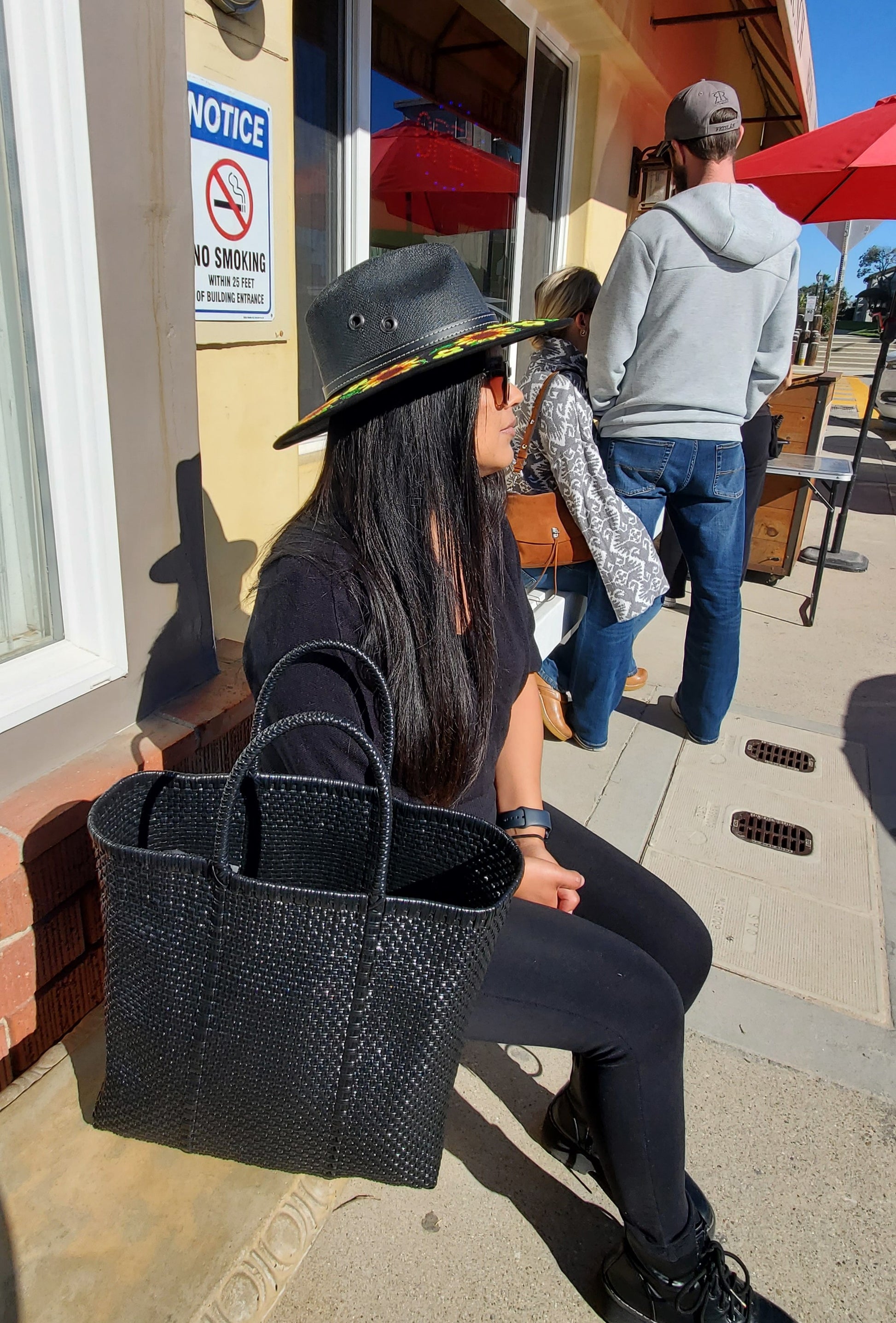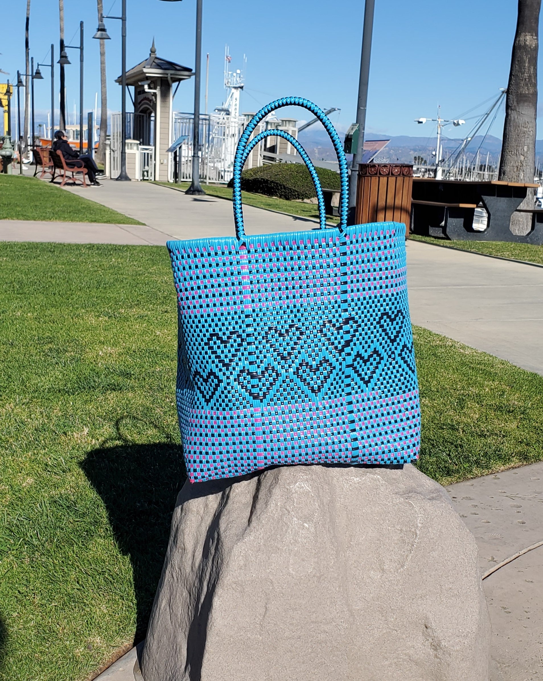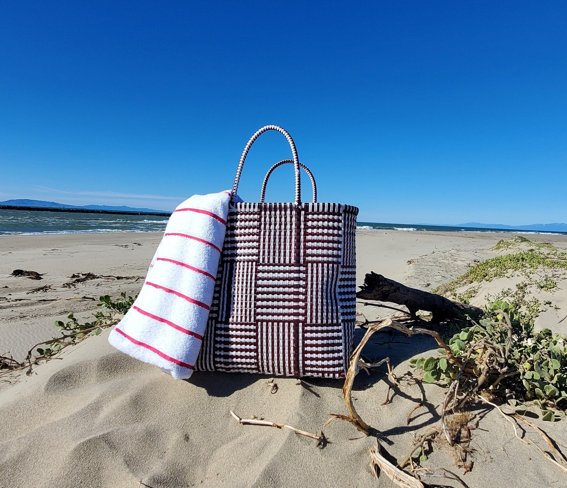 100% handwoven from Oaxaca, Mexico using a recycled plastic tread. Water-resistant, for all year around. Perfect for the beach, pool parties, camping, weekends, picnics, or farmer's market.