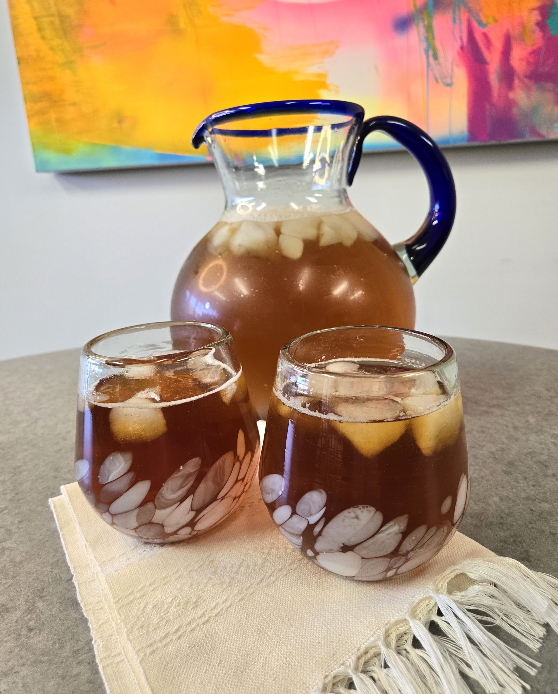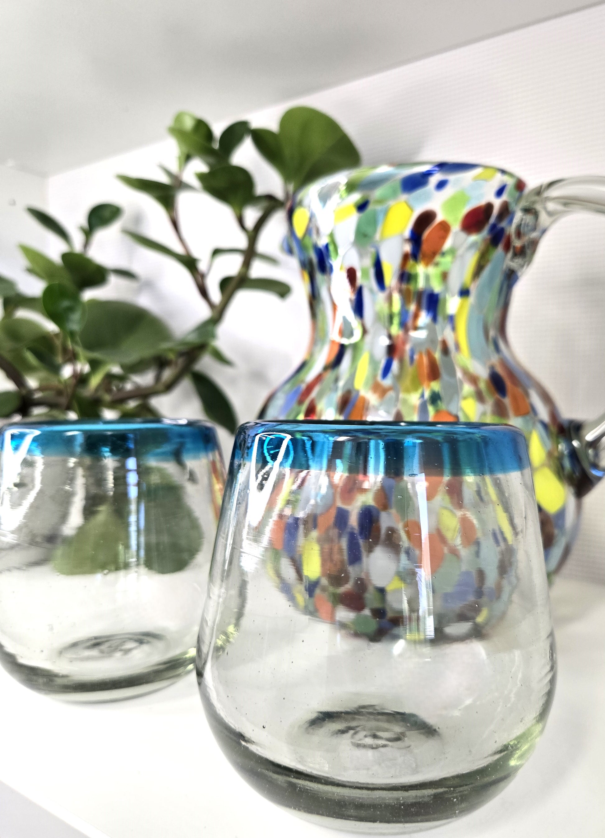 Introducing our Summer Collection, featuring beautiful hand-blown glassware from Tonala, Mexico. Each piece is meticulously crafted with vibrant colors, adding a touch of warmth and joy to your table setting. Elevate your dining experience with our unique and eye-catching glassware.