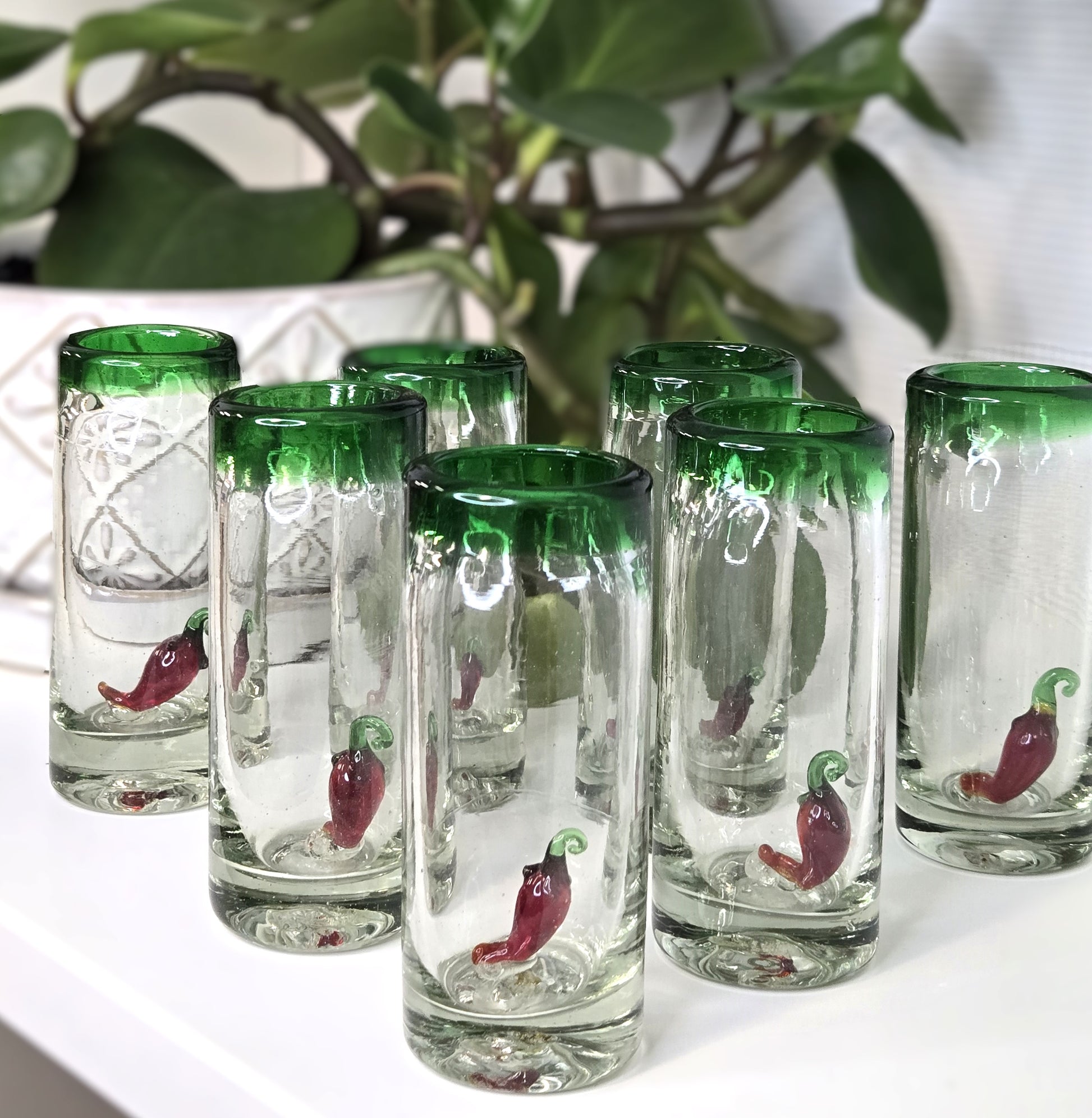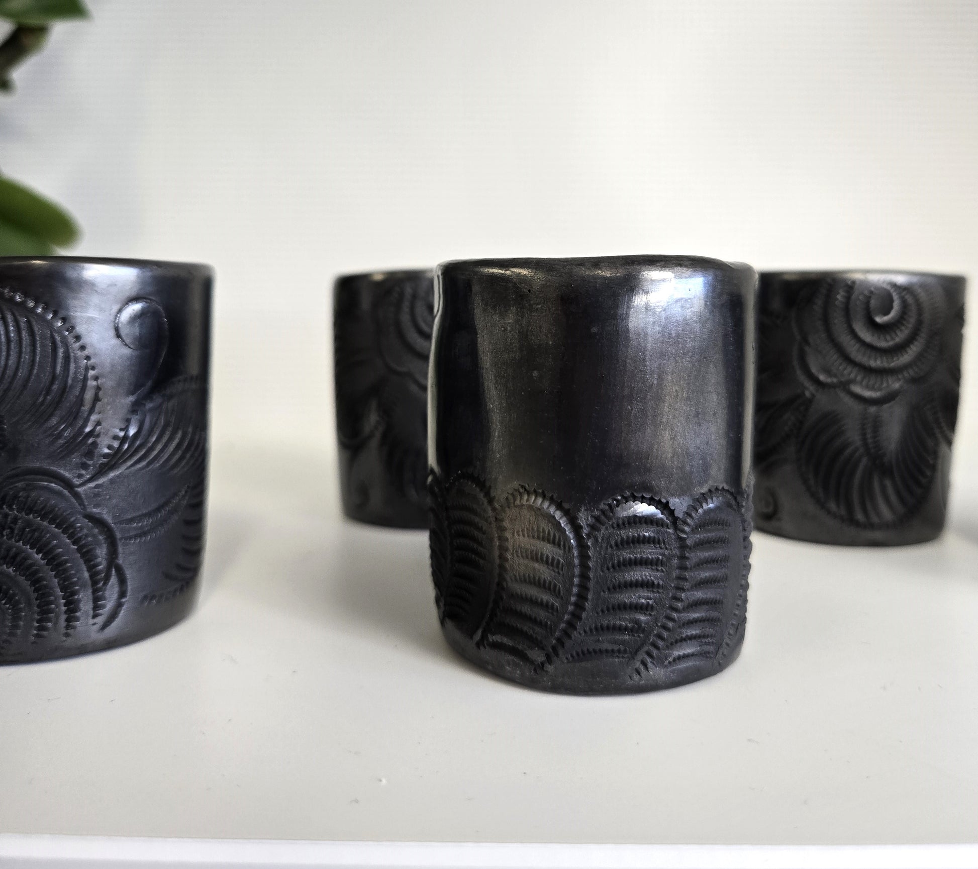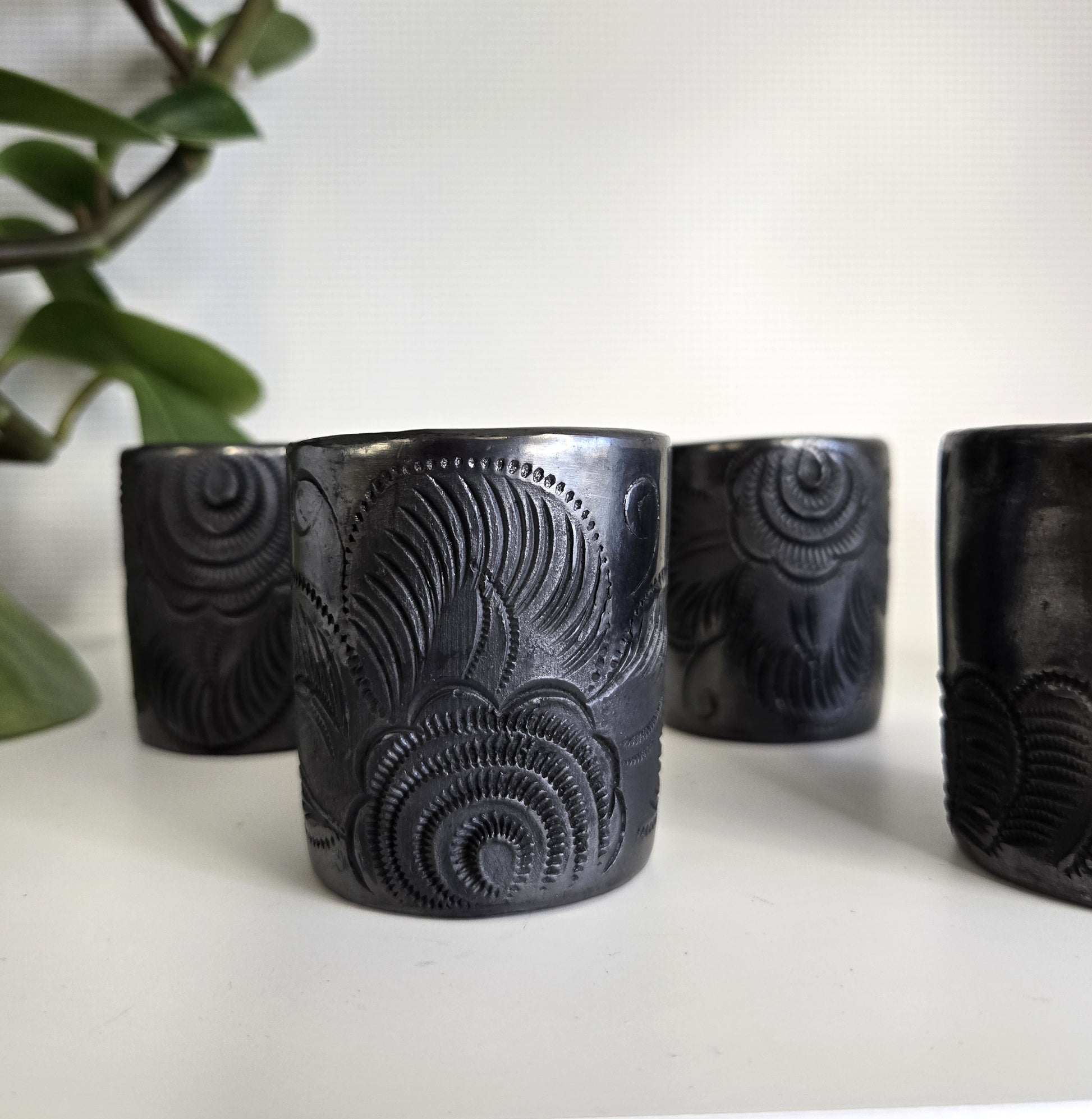 Our Tequilero Collection showcases a blend of items from two regions of Mexico: San Bartolo Coyotepec in Oaxaca and Tonala in Jalisco. Our glassware is crafted from recycled glass, melted down and then blown by hand to create one-of-a-kind pieces. Additionally, our barro negro pottery from Oaxaca is handcrafted in a signature style known for its distinct colors, shine, and intricate designs.